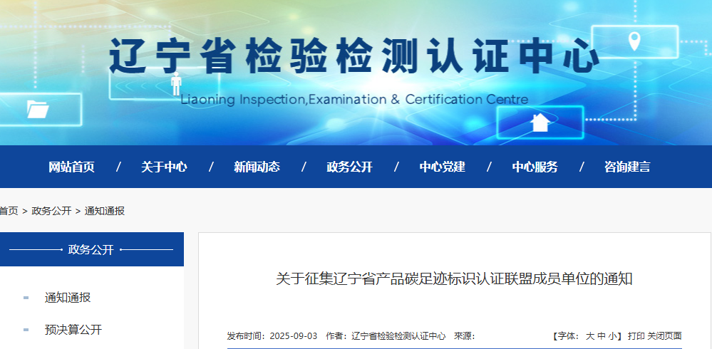 为全面落实党中央、国务院关于碳达峰碳中和重大决策部署,不断提升我省产品碳足迹管理水平,加快推动我省重点产业绿色低碳转型与高质量发展,按照《市场监管总局等部门关于开展产品碳足迹标识认证试点工作的通知》(国市监认证发〔2024〕124号)以及《关于印发辽宁省产品碳足迹标识认证试点工作方案的通知》等文件要求,辽宁产品碳足迹标识认证联盟(以下简称“联盟”)正式启动会员征集工作。现将有关事项通知如下: