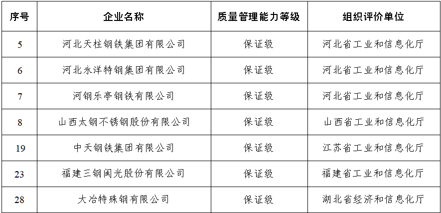 9月1日,工业和信息化部公布首批质量管理能力高等级企业名单。