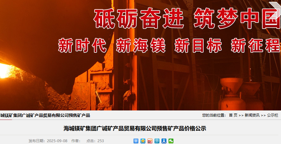 海城镁矿集团广诚矿产品贸易有限公司预售矿产品价格公示