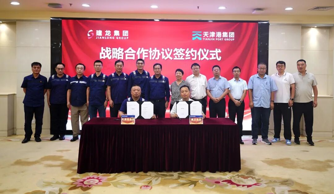 9月5日,北京建龙重工集团有限公司(以下简称“建龙集团”)与天津港集团有限公司(以下简称“天津港集团”)签署战略合作协议。建龙集团物流总监、龙翔智联总经理杨安定和天津港集团总经济师、天津港集团物流公司党委书记陈雪剑分别代表双方签署协议,建龙集团副总裁黄丹、天津港集团副总裁刘庆顺见证签约。