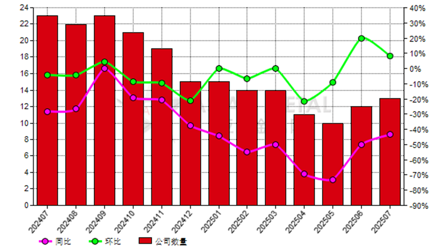 2025年1-7月,13家生产商共计生产125,300.00公吨,平均开工率5.47%。