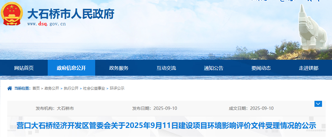根据建设项目环境影响评价审批程序的有关规定,2025年9月11日我局受理1个建设项目环境影响评价文件。现将受理情况予以公示,公示期为2025年9月11日-2025年9月15日(3个工作日)。