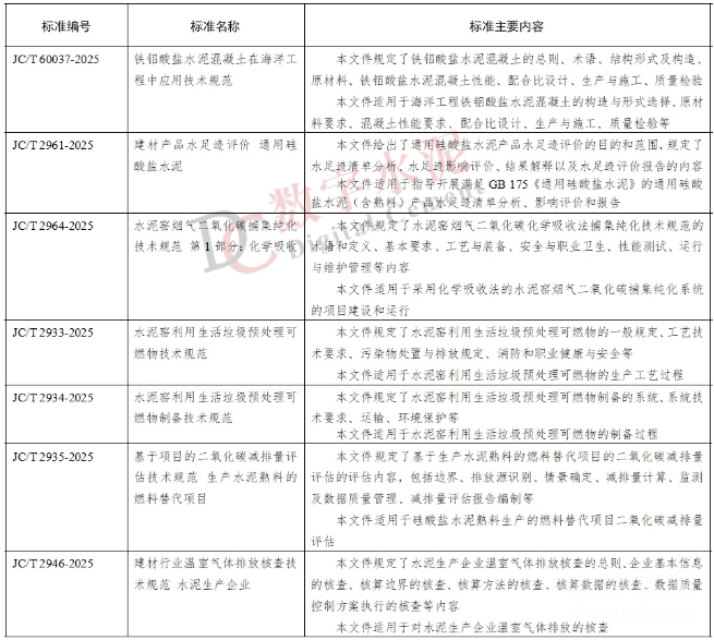 日前,工业和信息化部科技司发布《117项行业标准报批公示》显示,根据行业标准制修订计划,相关标准化技术组织已完成的34项建材行业标准中包括七项水泥行业相关标准,分别是:铁铝酸盐水泥混凝土在海洋工程中应用技术规范、建材产品水足迹评价 通用硅酸盐水泥、水泥窑烟气二氧化碳捕集纯化技术规范 第1部分:化学吸收、水泥窑利用生活垃圾预处理可燃物技术规范、水泥窑利用生活垃圾预处理可燃物制备技术规范、基于项目的二氧化碳减排量评估技术规范 生产水泥熟料的燃料替代项目、建材行业温室气体排放核查技术规范 水泥生产企业。