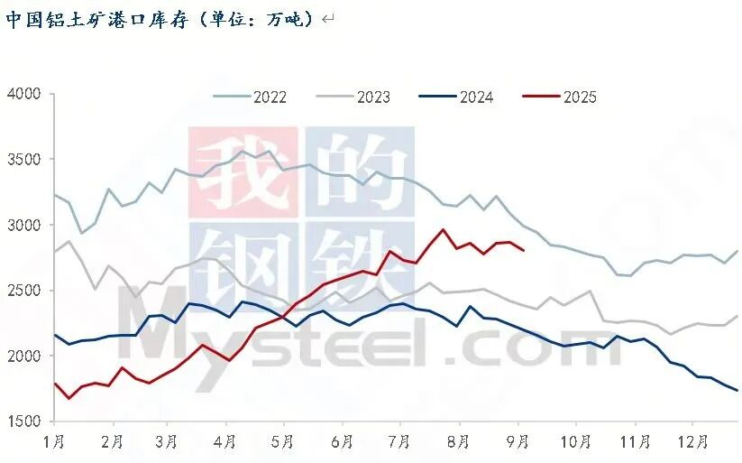 进口铝土矿港口库存目前仍保持高位震荡状态,但根据Mysteel调研,前期港口未售出的现货目前已有陆续成交。另外也存在个别持货商因对几内亚部分矿山复产复运预期偏悲观,而抱有惜售心态,港口现货及海漂现货有短期捂盘倾向。整体来看,港口现货库存水平受到氧化铝厂提货速度等因素影响,需更多关注其中待售现货量占比,当前该比重有逐渐缩小趋势。