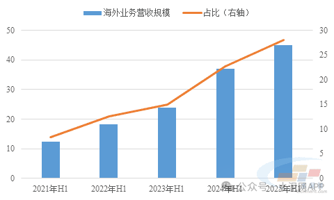 图:2025年上半年华新水泥海外业务营收规模及占比(单位:亿元、%)