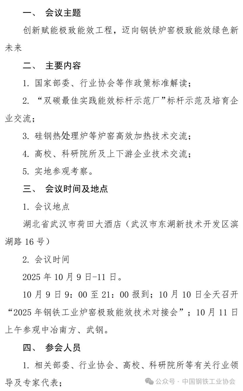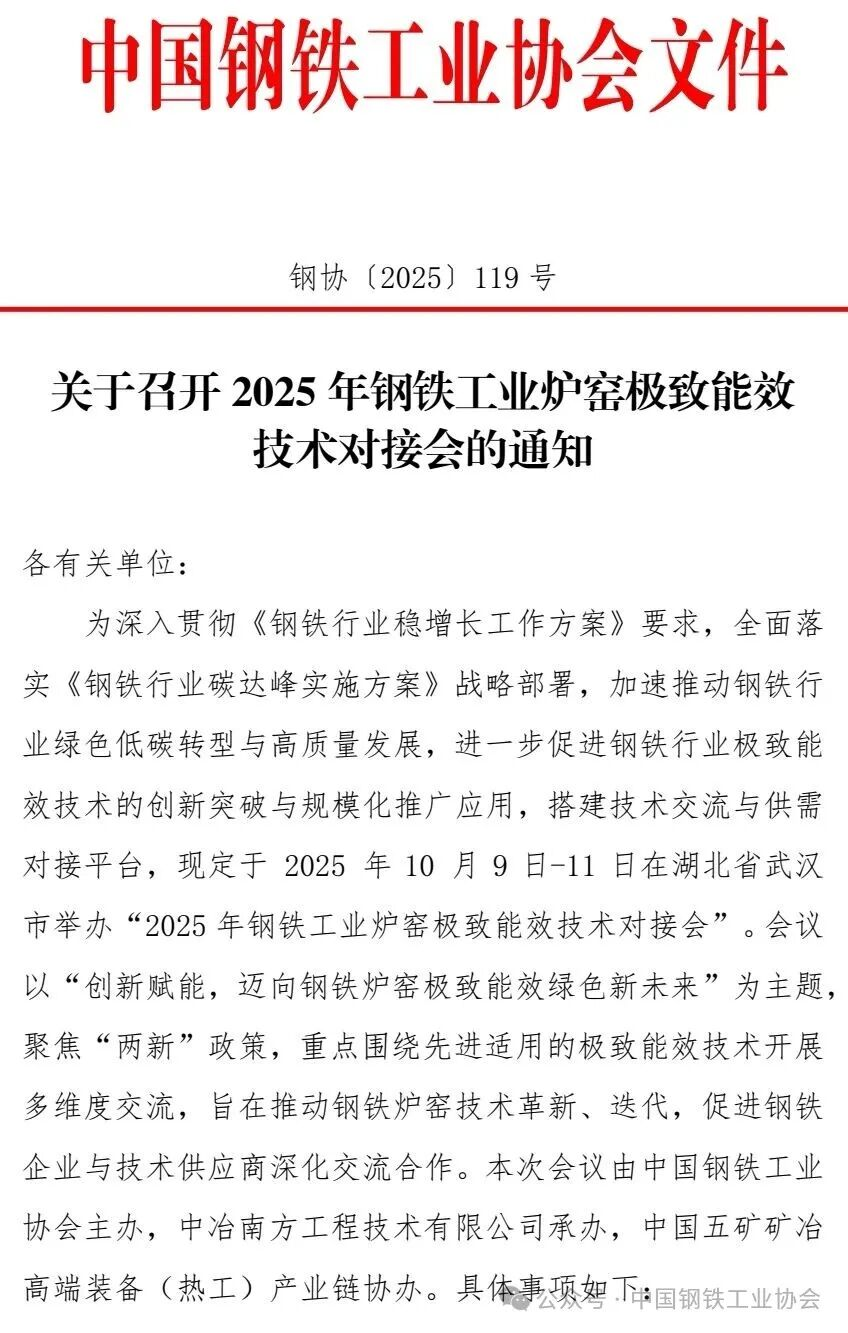 关于召开2025年钢铁工业炉窑极致能效技术对接会的通知