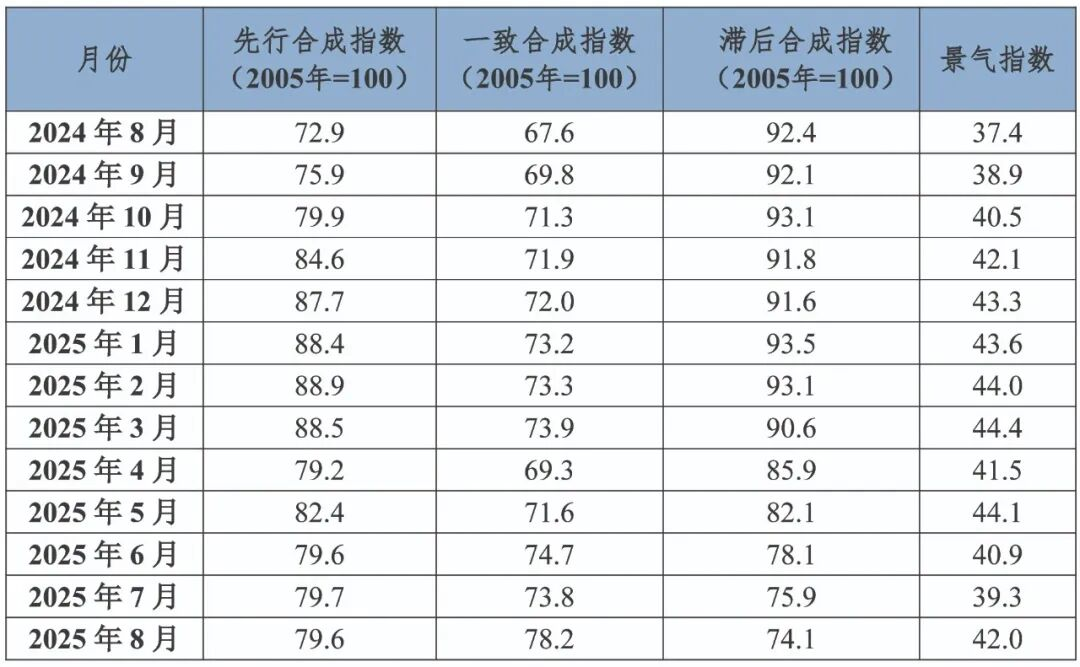 综合景气指数由9项指标构成,即先行指数和一致指数的构成指标。