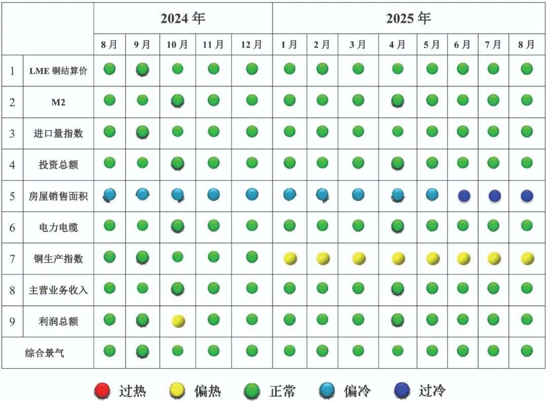 综上所述,尽管景气指数较上月保持上升趋势,主要指标仍处于“正常”区间运行。当前,铜产业呈现出“生产稳健、投资活跃、需求分化”的特点。展望未来,在宏观经济政策持续发力、产业转型升级深入推进的背景下,中国铜产业有望继续保持平稳发展态势。在国民经济继续延续稳定发展态势的前提下,中国铜产业景气指数仍将位于“正常”区间运行。