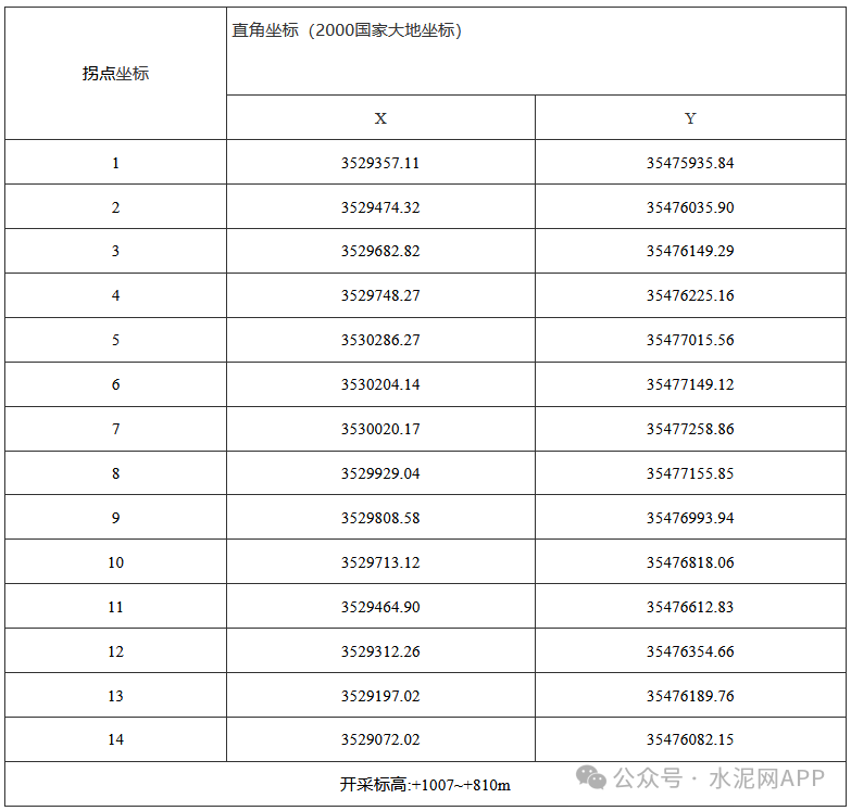 采矿权范围:面积0.569平方千米,拐点坐标如下(2000国家大地坐标):
