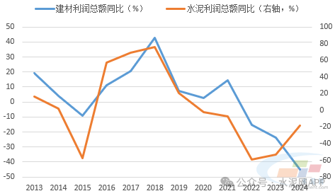 从近12年数据看,水泥行业利润总额同比走势与建材整体基本一致,2022-2024年,水泥行业利润大幅下滑,是拖累建材行业连续三年持续下降的主要因素,因此水泥实现稳增长对整个建材行业稳增长至关重要。