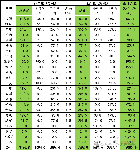 据中国水泥网水泥大数据研究院统计,截至当前,补产能公示项目仅100余例,累计补充产能3496.9万吨,退出5582万吨,净减2085.1万吨,净减产能数量远少于需求下滑数量,供需矛盾放大,政策效果较差。