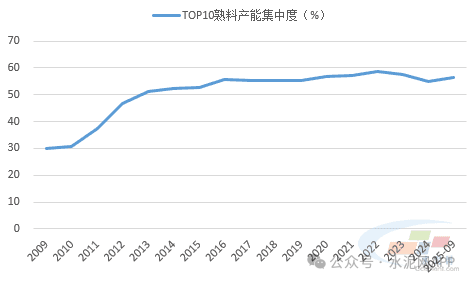 图3:前十企业熟料产能集中度走势