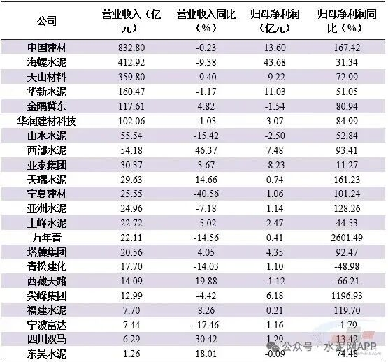从营收情况看,22家上市公司中有9家营收实现增长,13家下降。9家增长公司中,增速超10%的有5家。西部水泥营收增长46.37%,行业领先,主要得益于海外业务经过多年布局,业绩出现爆发式增长,海外市场水泥及熟料销售收入达到20.27亿元,同比大幅增长82.83%,另外销售物业产生收入达到7.97亿元,占总营收增量46.44%。13家下降公司中,降幅在1%左右的有3家,4%~10%有5家,超过10%的有5家。