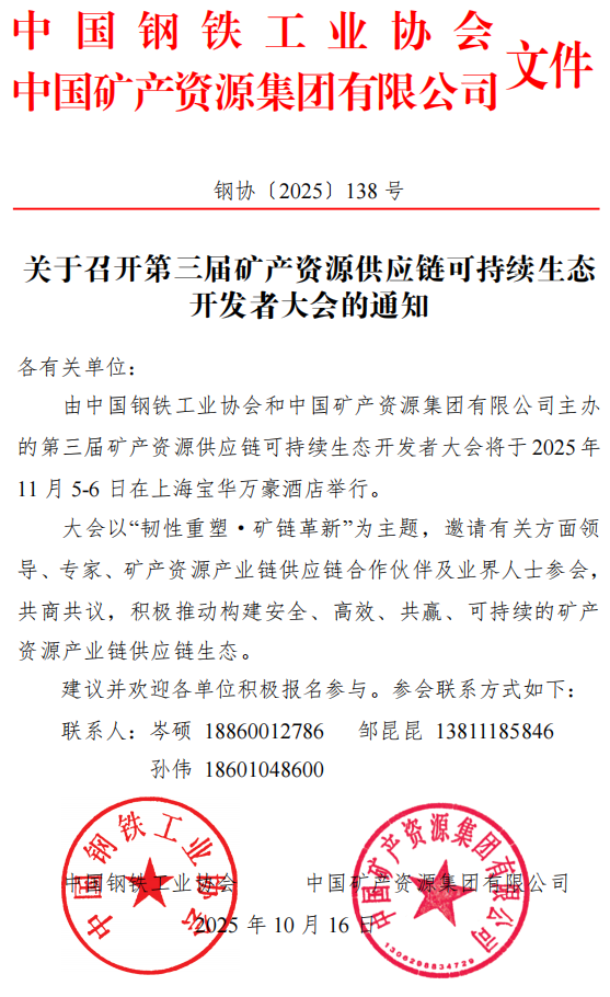 关于召开第三届矿产资源供应链可持续生态开发者大会的通知