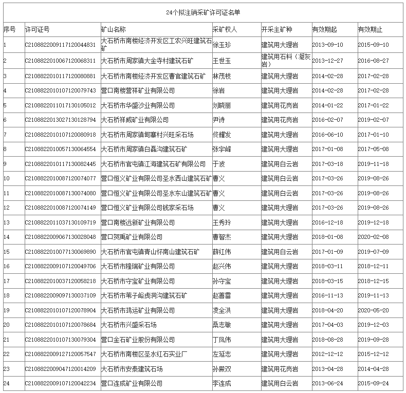 附件:24个拟注销采矿许可证名单