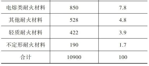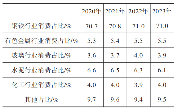 表3 2020—2023年我国耐火材料下游产业消费情况