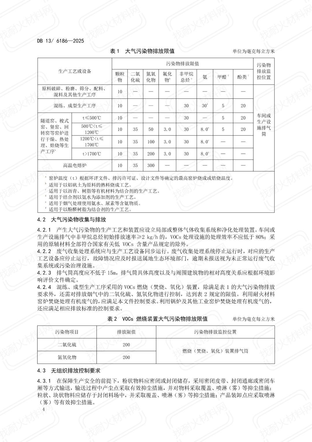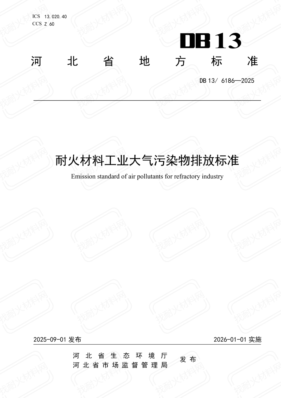 本文件规定了耐火材料工业企业或生产设施的大气污染物排放限值及控制要求、大气污染物监测要求、达标判定要求以及实施与监督。