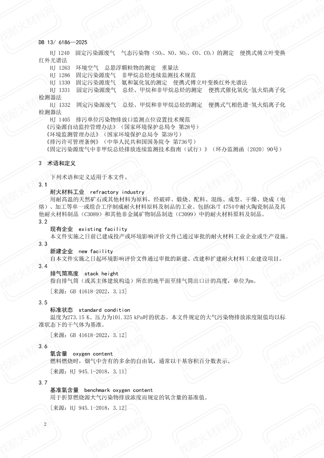 本文件适用于现有耐火材料工业企业或生产设施的大气污染物排放管理,以及新建耐火材料工业建设项目的环境影响评价、环境保护设施设计、竣工环境保护设施验收、排污许可证核发及其投产后的大气污染物排放管理。