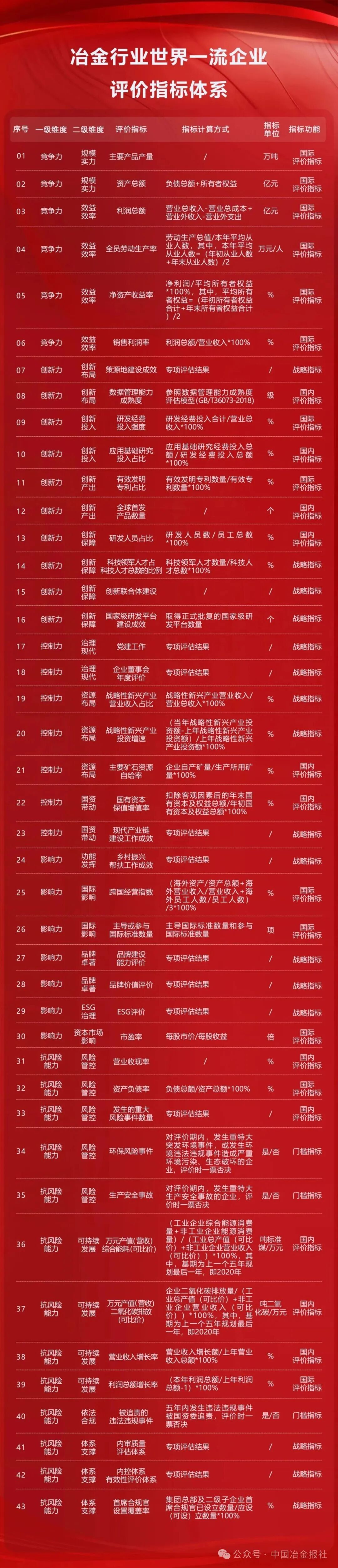 其中,冶金行业世界一流企业评价指标体系如下: