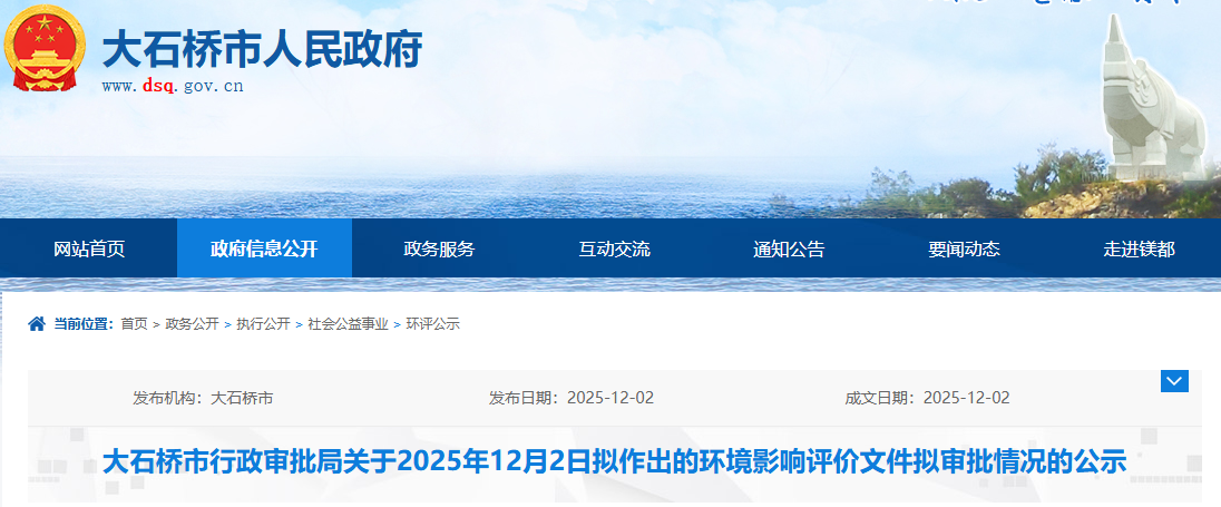 根据建设项目环境影响评价审批程序的有关规定,经审查,我局拟对1个项目环境影响评价文件作出审批意见。为保证此次审查工作的严肃性和公正性,现将拟作出审批意见的环境影响评价文件基本情况予以公示,公示期为2025年12月1日-2025年12月5日(5个工作日)。