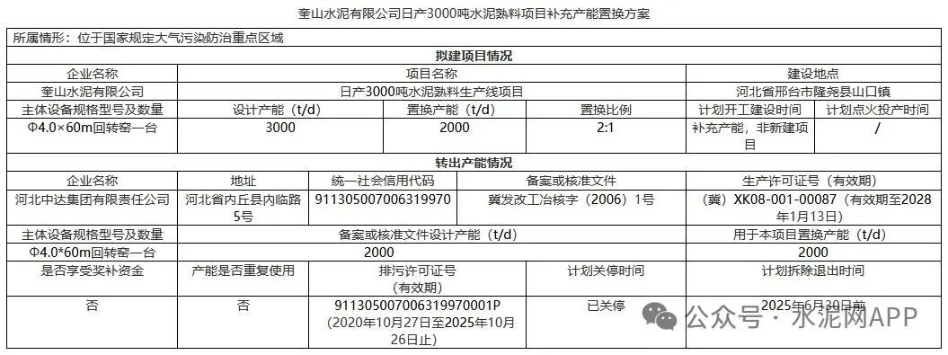 该条生产线产能置换方案如下: