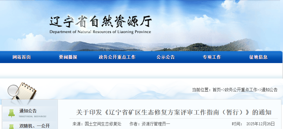 辽宁省矿区生态修复方案评审工作指南(暂行)