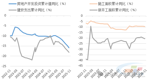房地产开发端,1-11月房地产开发投资完成额同比下降15.9%,其中建安工程完成额下降18.2%,投资端特别是建安工程的大幅下滑拖累水泥用量走低。施工端看,新开工面积依然处于深降通道,1-11月份同比下降20.5%;或受竣工面积年内降幅扩大等影响,施工端整体同样不佳,同比下降9.6%。