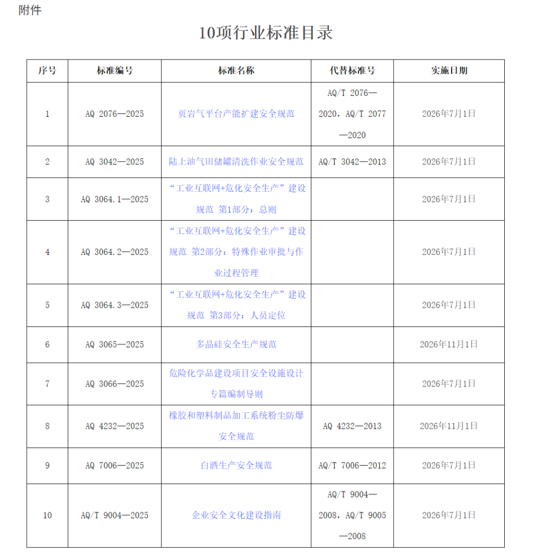 附件:10项行业标准目录