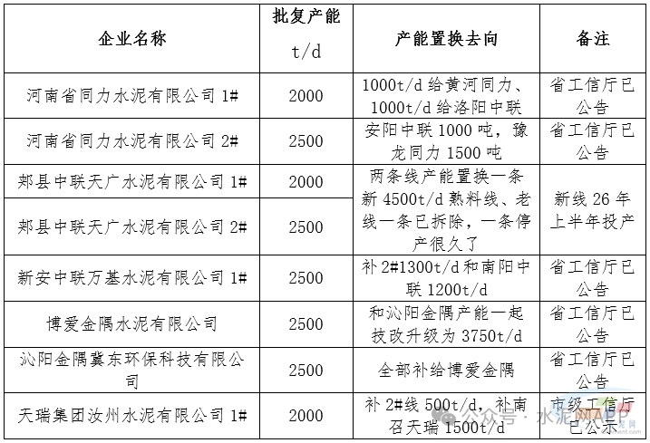 根据2025年度河南省工信部门发布的产能置换清单,结合河南省水泥生产线数据,2025年度河南省已实质性地关停全部2500t/d熟料线,成为继山东省之后又一个全部关停2500t/d熟料线的水泥大省(特种水泥生产线除外);具体数据如下: