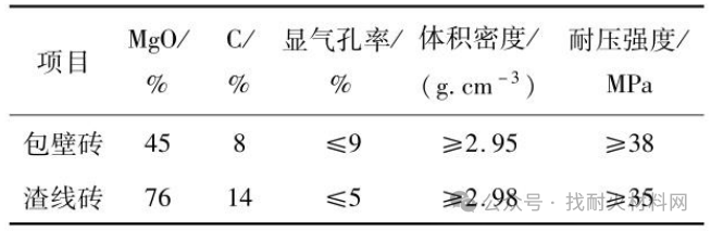 表1 钢包砖理化指标