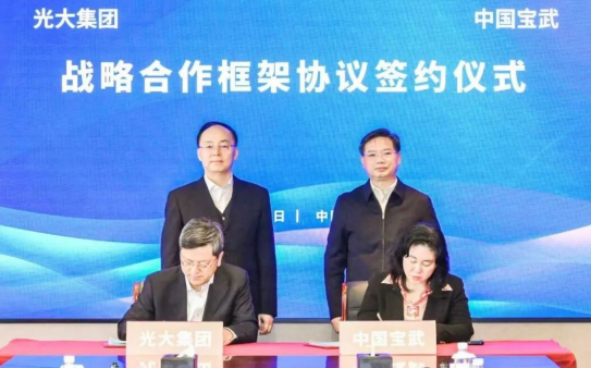 1月29日上午,中国宝武与光大集团在宝武大厦签署新一轮战略合作框架协议。中国宝武党委书记、董事长胡望明与光大集团党委书记、董事长吴利军就进一步深化金融与实业合作等话题进行座谈交流,并见证签约。