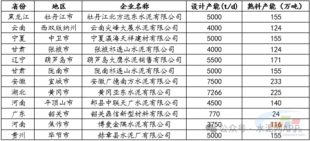表:2026年计划新投熟料生产线信息