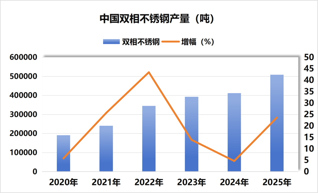 2025年,中国不锈钢粗钢产量4086.81万吨,同比增加142.70万吨,增长3.62%。