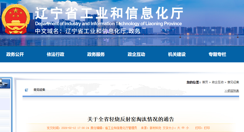 按照《辽宁省人民政府办公厅关于推进菱镁行业高质量发展的实施意见》(辽政办发〔2023〕15号)及《辽宁省轻烧反射窑淘汰工作方案》(辽工信建材〔2024〕18号)精神,全省组织相关地区开展轻烧反射窑淘汰工作。根据相关地区报送淘汰退出情况,现将轻烧反射窑淘汰台账予以通告,接受社会监督。
