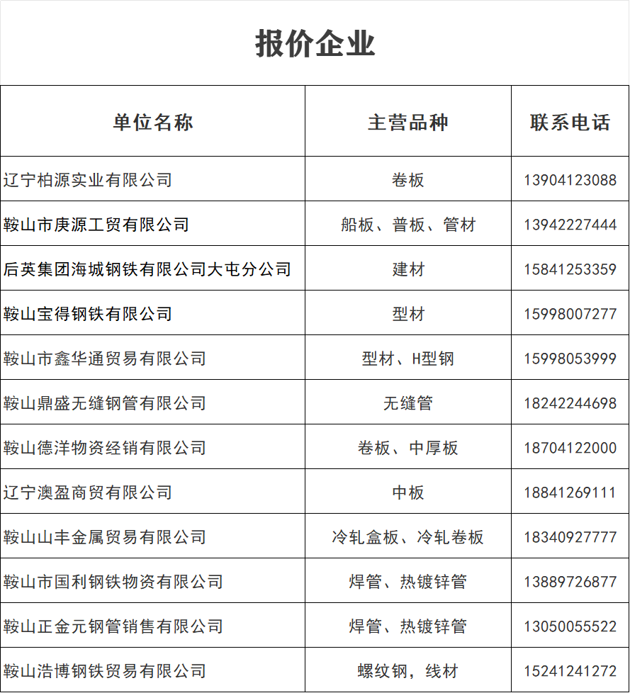 3月2日 鞍山地区钢材价格表