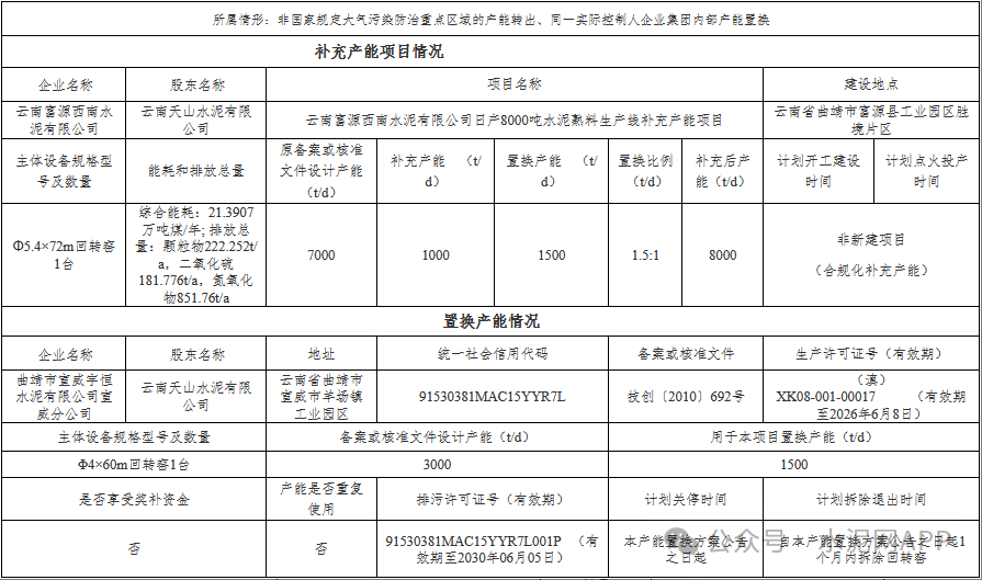3月4日,云南省工信厅发布两则水泥生产线产能置换方案公示。曲靖市宣威宇恒水泥有限公司宣威分公司退出一条3000t/d熟料生产线,其中1500t/d产能用于补充云南富源西南水泥有限公司一条7000t/d熟料线,补齐后产能8000t/d,置换比例1.5:1;另外1500t/d产能用于补充丽江古城西南水泥有限公司一条5000t/d熟料线,补齐后产能6000t/d,置换比例1.5:1。