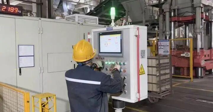 在半成品锻造车间,机器轰鸣声中,半成品工段段长张贺一边带着记者查看生产线,一边现场介绍。“咱们新老生产线加起来一共22台压机,其中有4台是德国生产的莱式液压机,剩下的是国产恒力泰液压机。”张贺指着正在运行的设备对记者说,“不同机型搭配使用,既能保证压制精度,又能满足大批量生产的需求。”