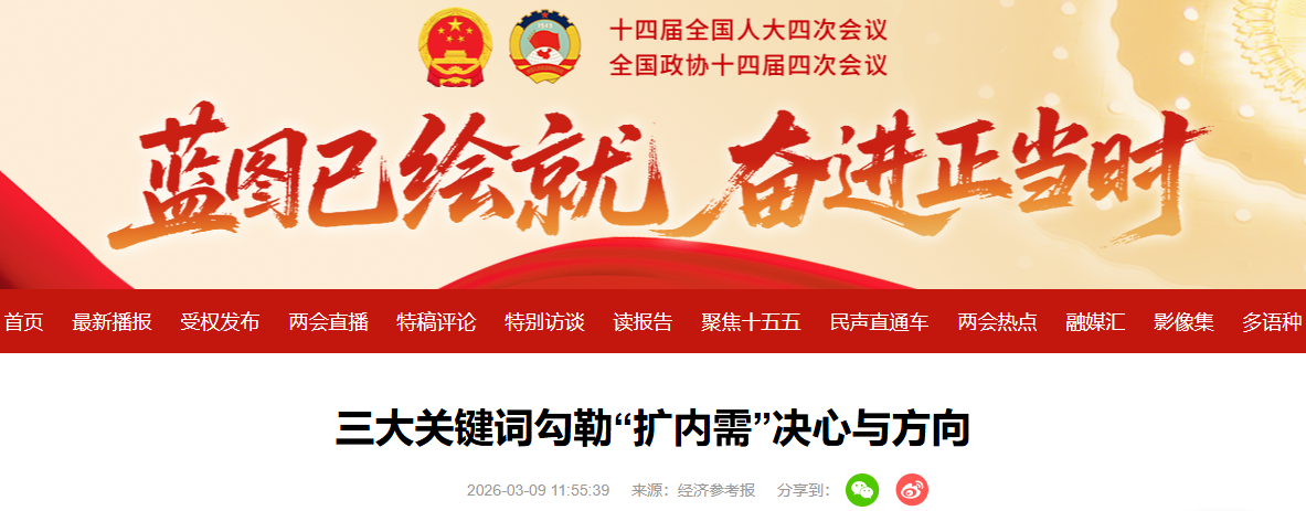 今年的政府工作报告中,“扩内需”不仅继续位列工作任务之首,更被赋予新的政策内涵与操作路径。从代表委员以及业界专家观点来看,“民生为大”“向新而行”“加减乘除”成为三个核心关键词,从政策导向、承载路径和保障举措三个方面,共同勾勒出“十五五”开局之年扩大内需的决心与方向。