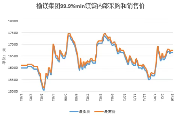 3月16日(周一),镁市稳定运行,99.9%镁锭府谷地区工厂报主流出厂含税现金价格维持16650——16750元/吨,个别工厂提高报价,主流成交价格16700元/吨,低价货源难寻。
