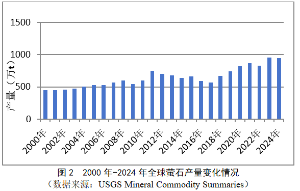 【来源】彭春艳.全球萤石资源供需形势分析及对我国萤石产业发展的建议[J].中国非金属矿工业导刊,2025(4):1-5.
