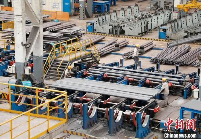 河南济源外贸企业济源钢铁集团生产车间工人正在搬运钢制品。 阚力 摄