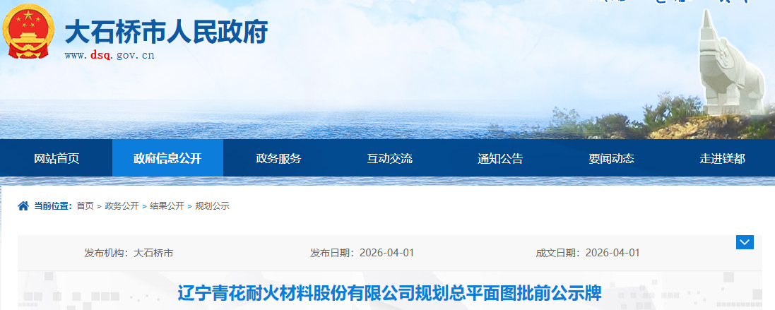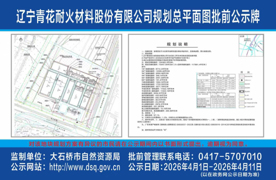 辽宁青花耐火材料股份有限公司规划总平面图批前公示牌