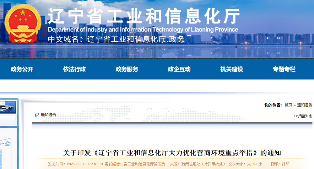 辽宁省工业和信息化厅大力优化营商环境重点举措
