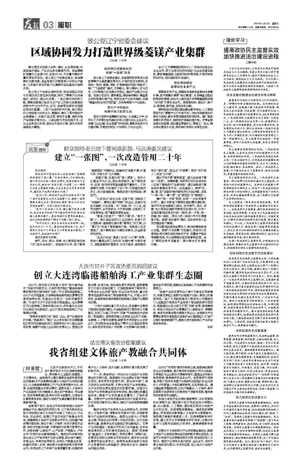 镁主要应用在耐火材料、建材、合金等领域,对国家经济建设、产业安全具有重要作用。我省菱镁矿储量约占全国92%、全球25.8%,开采量与镁砂产量均居世界首位。致公党辽宁省委会提出,我省菱镁矿资源丰富,是全球最大的镁质耐火材料生产基地,已具备打造世界级产业集群的坚实基础与独特优势。