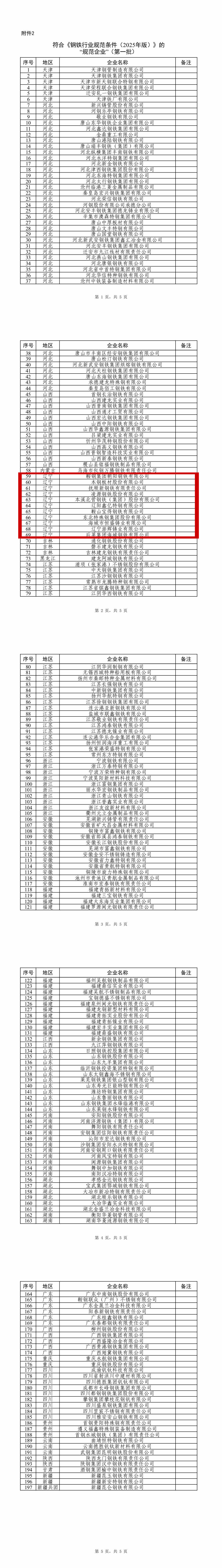 2.符合《钢铁行业规范条件(2025年版)》的“规范企业”(第一批)