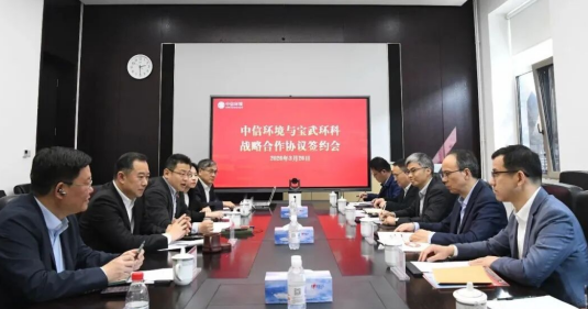 3月26日,宝武环科与中信环境投资集团有限公司(简称“中信环境”)在北京正式签署战略合作协议。将整合优势资源,共同开拓市场,打造“强强合作”的典范工程。
