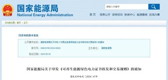 9月5日,国家能源局印发《可再生能源绿色电力证书核发和交易规则》(以下简称《规则》)的通知。