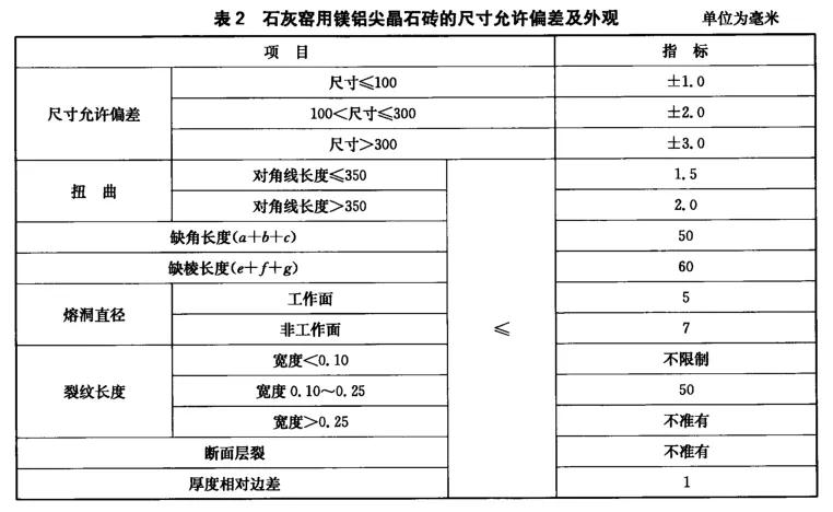 镁铝尖晶石砖主要用于石灰窑的烧成带、预热带等关键部位,这些部位对耐火材料的性能要求极高。使用镁铝尖晶石砖可以显著提高石灰窑的运行效率和产品质量。YB/T 4446《石灰窑用镁铝尖晶石砖》(以下简称标准)对石灰窑用镁铝尖晶石砖的形状尺寸、技术要求、试验方法、质量评定程序、包装、标志、运输、储存和质量证明书等项目做了详细要求。本期小编将对石灰窑用镁铝尖晶石砖的指标要求及检测方法进行介绍。