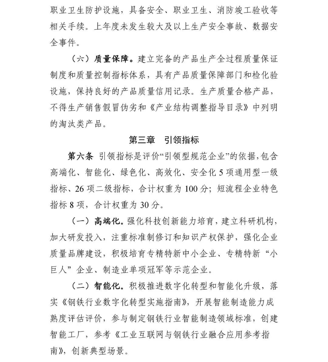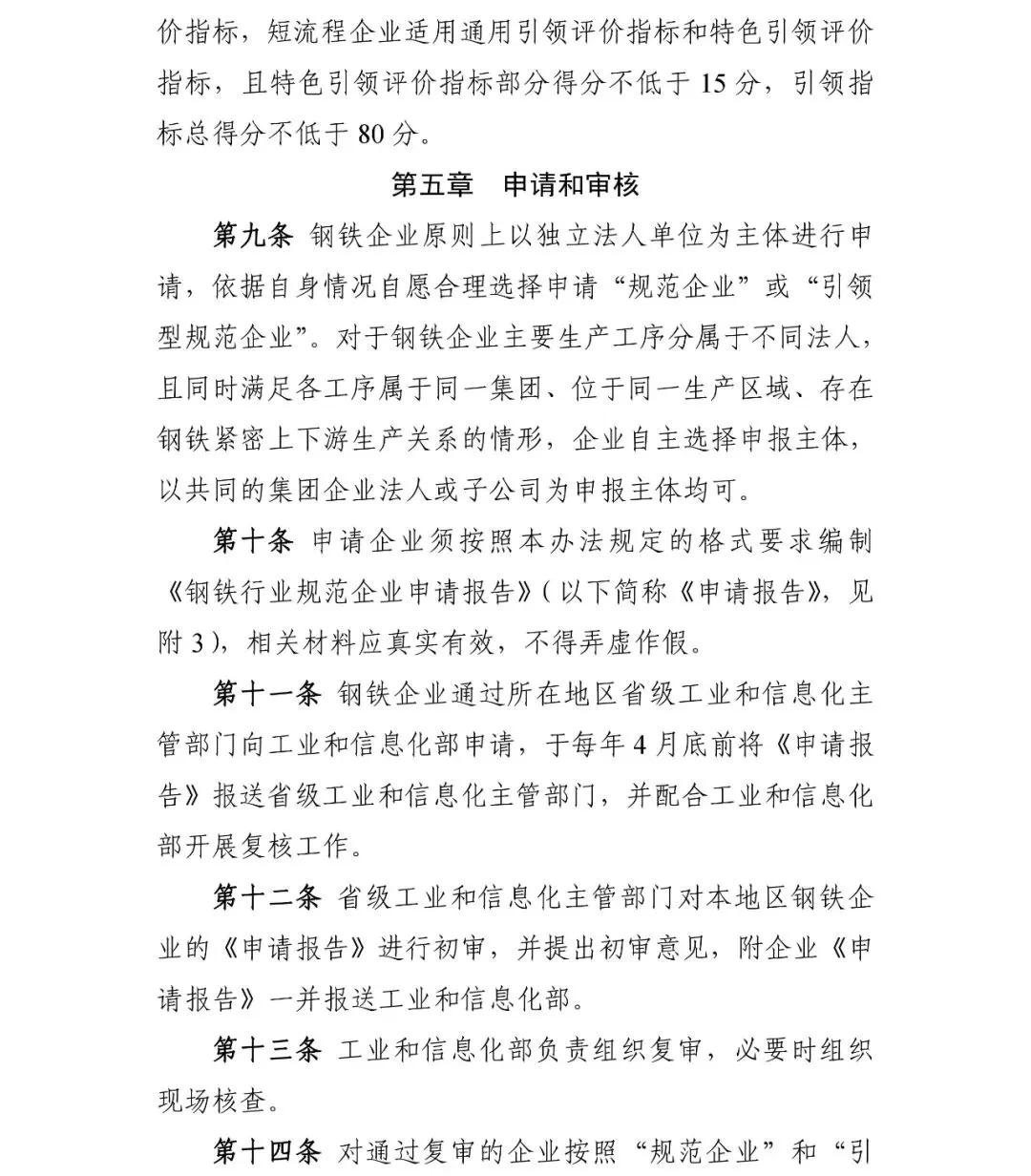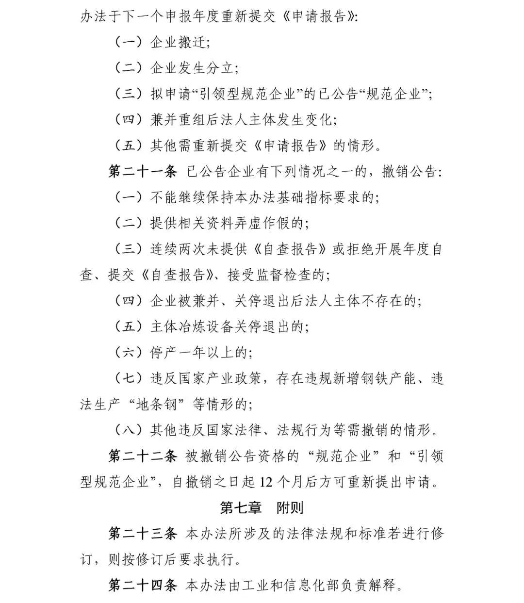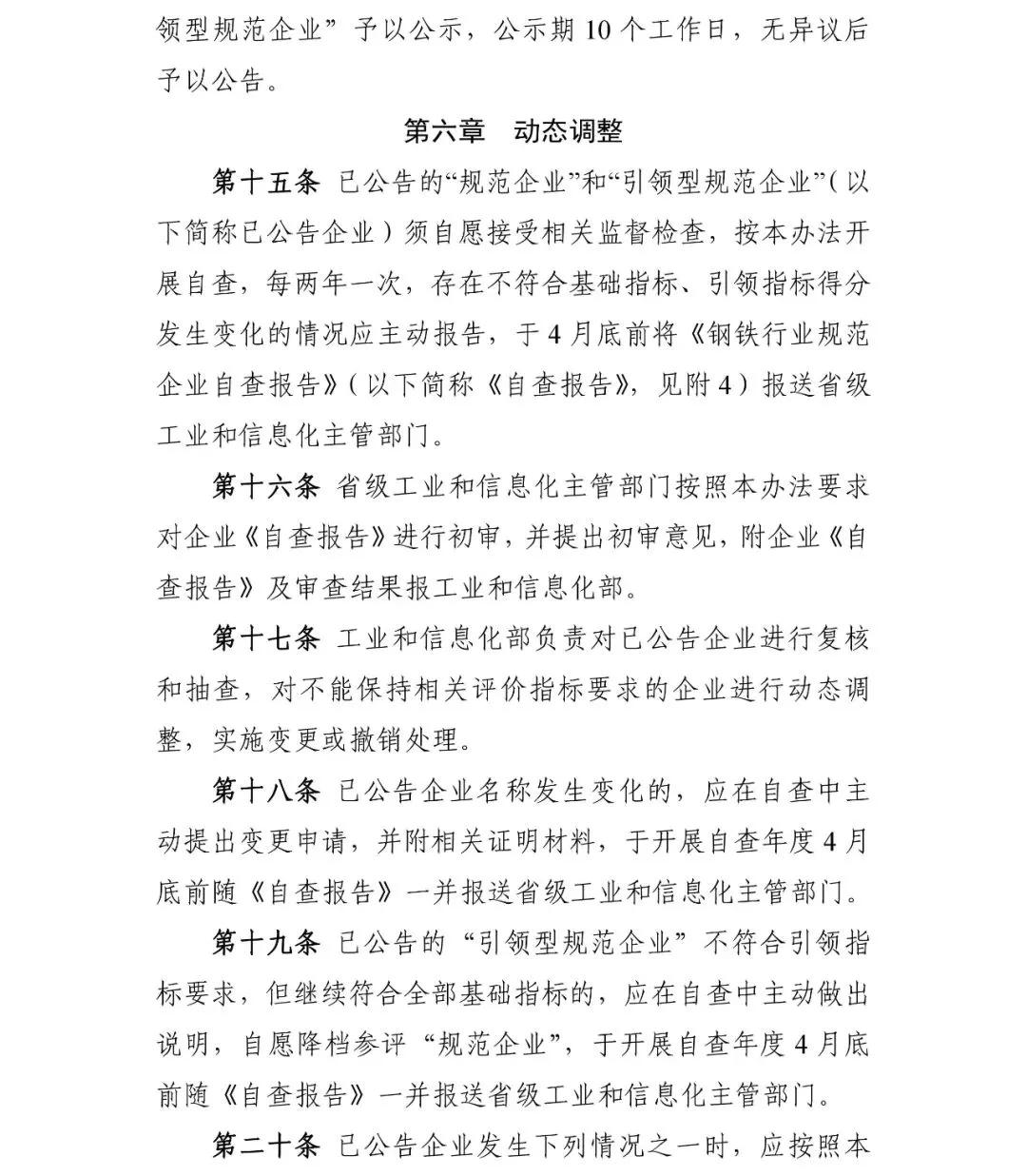 为落实全国新型工业化推进大会部署,加快推动钢铁行业转型升级,依据国家有关法律法规和产业政策,我们对《钢铁行业规范条件(2015年修订)》和《钢铁行业规范企业管理办法》(工业和信息化部2015年第35号公告)进行了修订,研究形成了《钢铁行业规范条件(2024年修订)(征求意见稿)》(见附件),现向社会公开征求意见。如有修改意见或建议,请于11月14日前书面反馈我司。