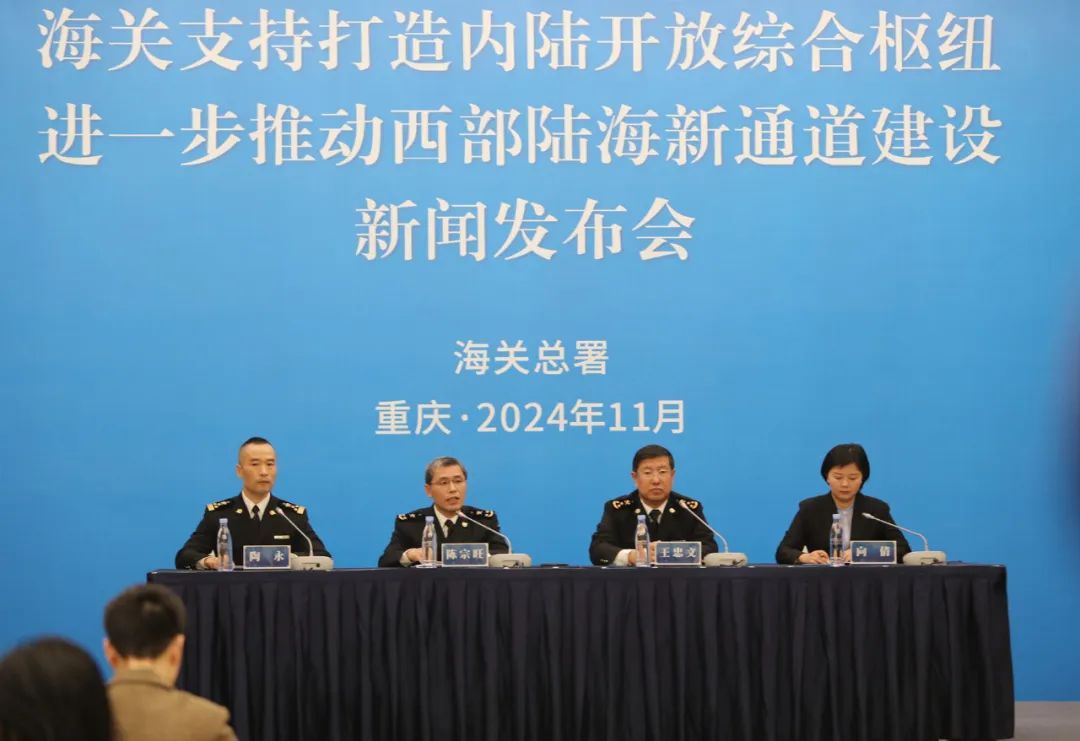 海关总署11月12日上午10时在重庆举办“海关支持打造内陆开放综合枢纽 进一步推动西部陆海新通道建设”新闻发布会。海关总署综合业务司副司长陈宗旺、重庆海关副关长王忠文、重庆市政府口岸物流办副主任向倩出席介绍支持西部陆海新通道建设情况,并答记者问。